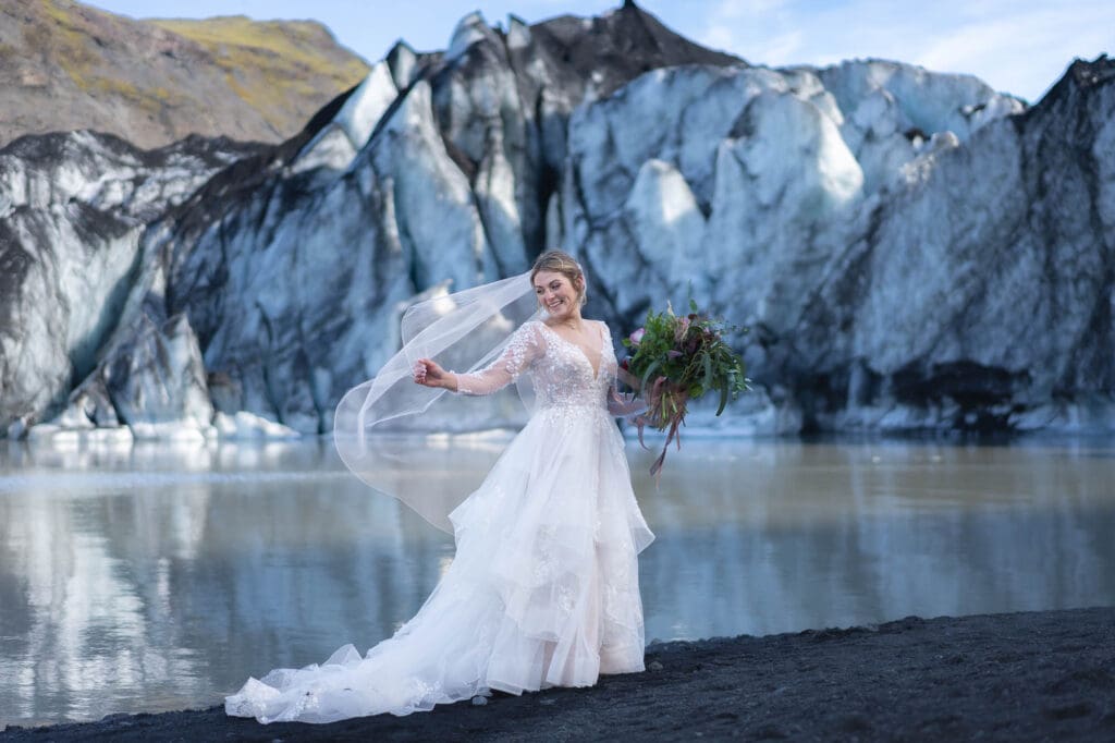 After the ceremony we took some photos at the beach and headed towards the glacier. I love taking my clients all the way to the front of the glacier which takes around 20 minutes one way. The ice looked amazing and blue that day. We got some beautiful shots there that I really love!
