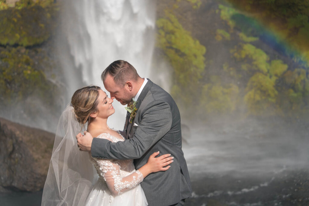 Our last stop was the famous Skogafoss waterfall that never disappoints. The couple was brave and got close to the waterfall where there is a lot of spray for some of the shots and they actually loved how refreshing it was.