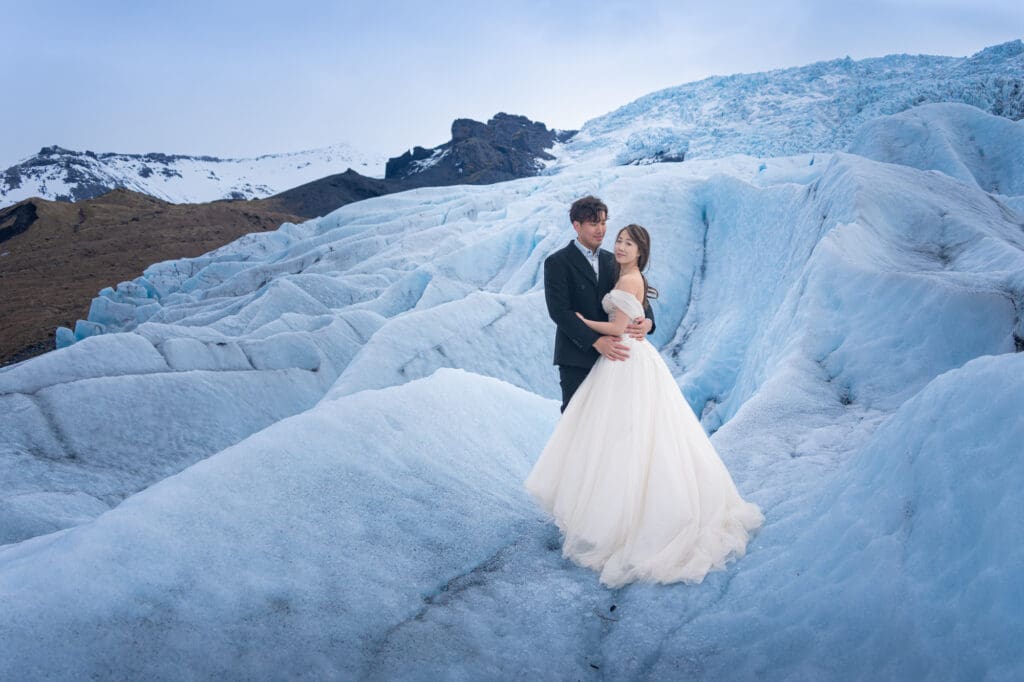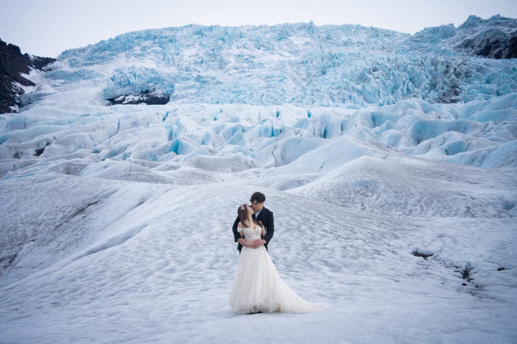 Glaciers in Iceland are some of the most easily accessible in the world and it’s possible to book a glacier hike all year round! For a glacier elopement you would need to book a private tour with a glacier guide who will provide you all the necessary gear. It’s an unforgettable experience to walk on a glacier and making your elopement this adventurous and stunning is something you will never regret!